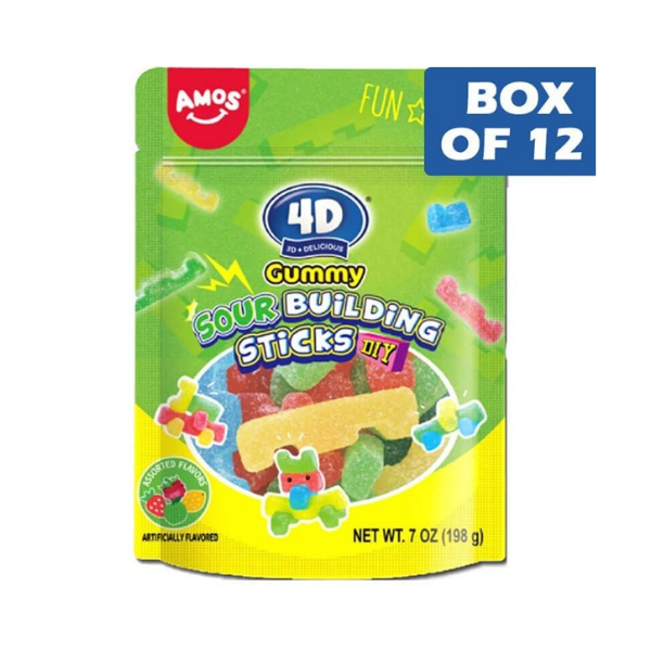 **AMOS 4D GUMMIES SOUR BUILDING STICKS BAG 1KG**